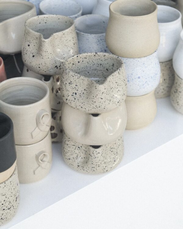 Enjoy your favourite cappuccino or mulled wine in our handmade curvy ceramic mug. It adds a soft touch of minimalism to your  tableware collection. These mugs are hand-thrown on a pottery wheel and they are made out of white clay. They are dishwasher and microwave friendly. Pair it with the small ceramic plate for snacks and enjoy.