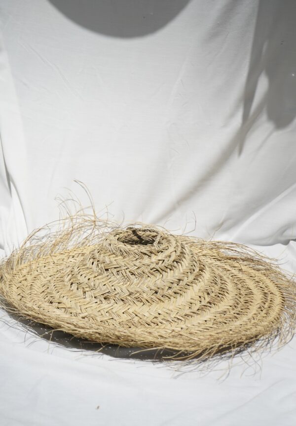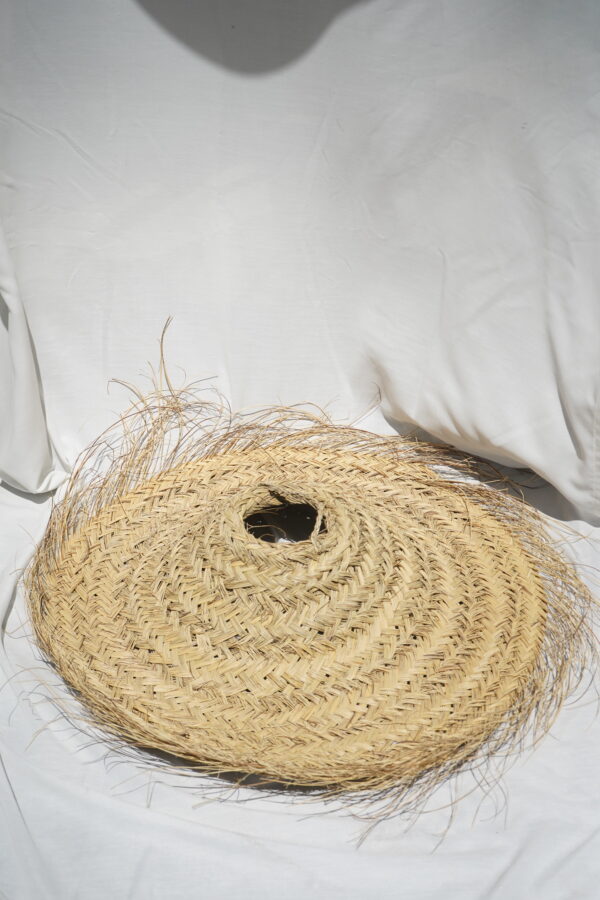 Cone shaped lamp shade is made of leaves from the date palm and it is handmade in Morocco. The leaves are weaved in a wide pattern that in the bottom ends as lovely loose frills that adds a light and fun look. The shade is made with a hook on top that makes it easy to hang. Socket and wire is not included.