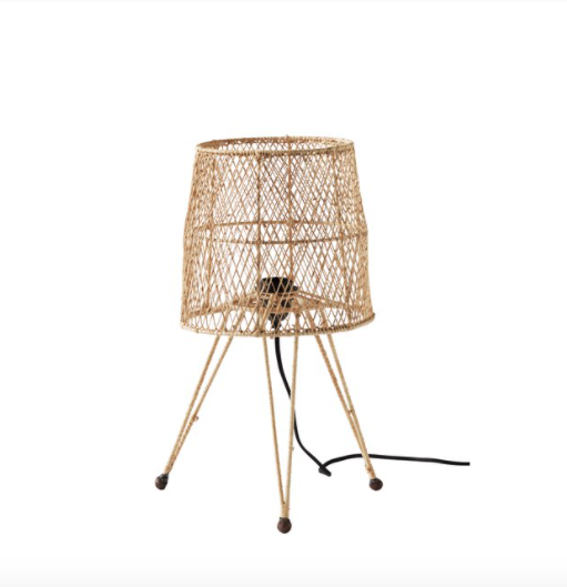 Simple and beautiful table lamp made in bast and iron. The lamp is handmade in Morocco, which makes each lamp unique. With the combination of the elegant bast together with the dark iron creates a rustic expression. The shade’s graphical pattern creates the most beautiful light, and fits perfectly in the modern home.