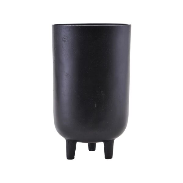 This tall aluminium planter is called Jang and has been given a black finish. Its minimalist look with legs that lift it off the ground gives the heavy material a light touch. Use the round, tall planter on a shelf, console or side table to bring plants into your home.