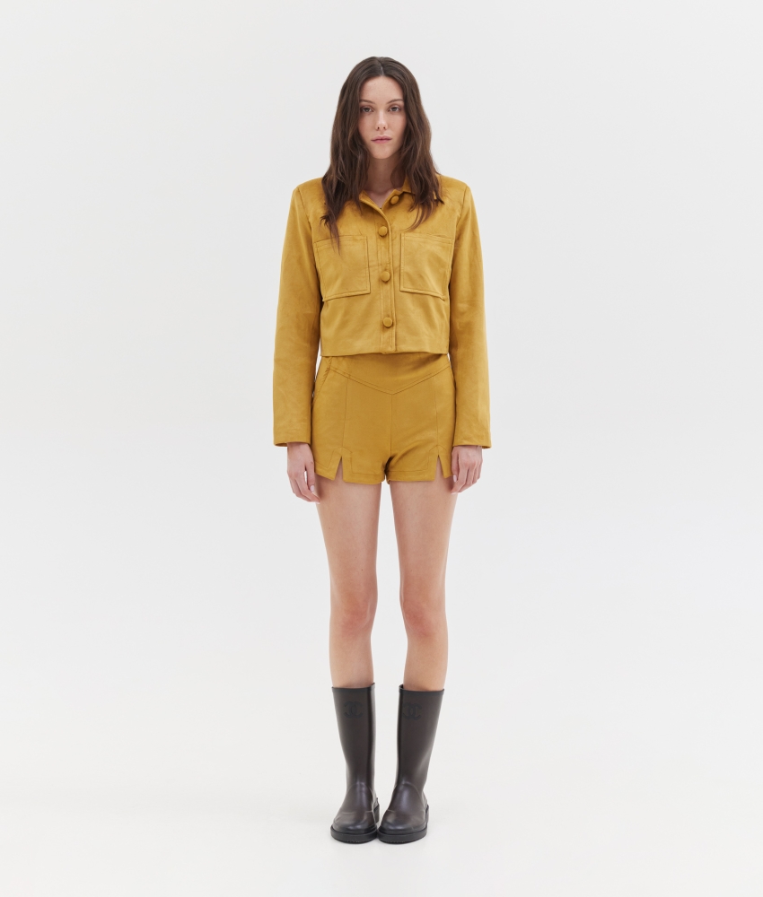 – FAUX LEATHER SUEDE HIGHWAISTED SHORTS