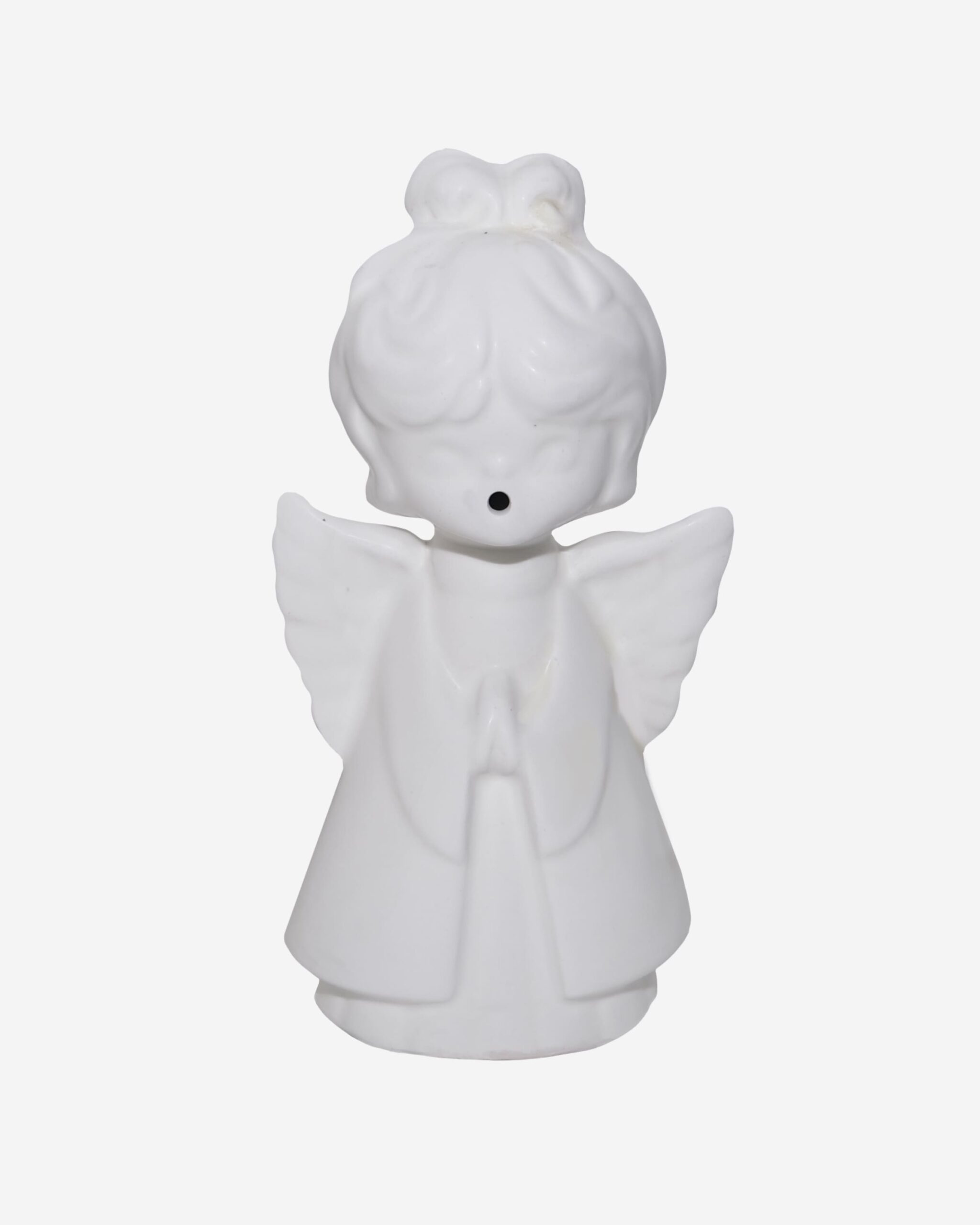 Made with white clay, the perfect Angel design to decorate your tree top. Simple and classic goes to any type of home space. Can be placed as a table decoration piece.