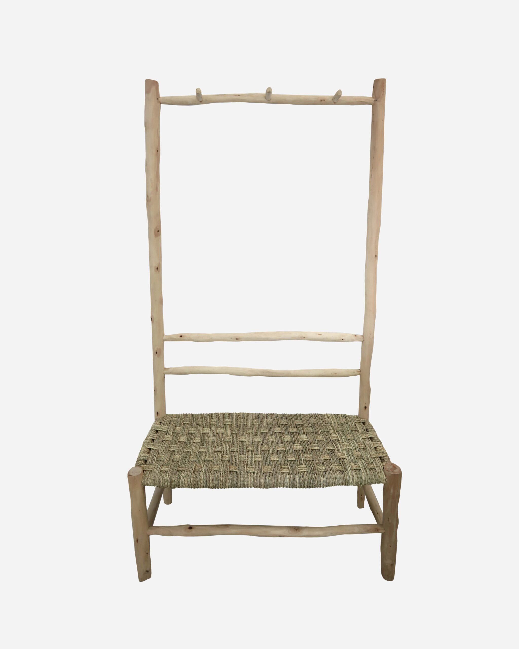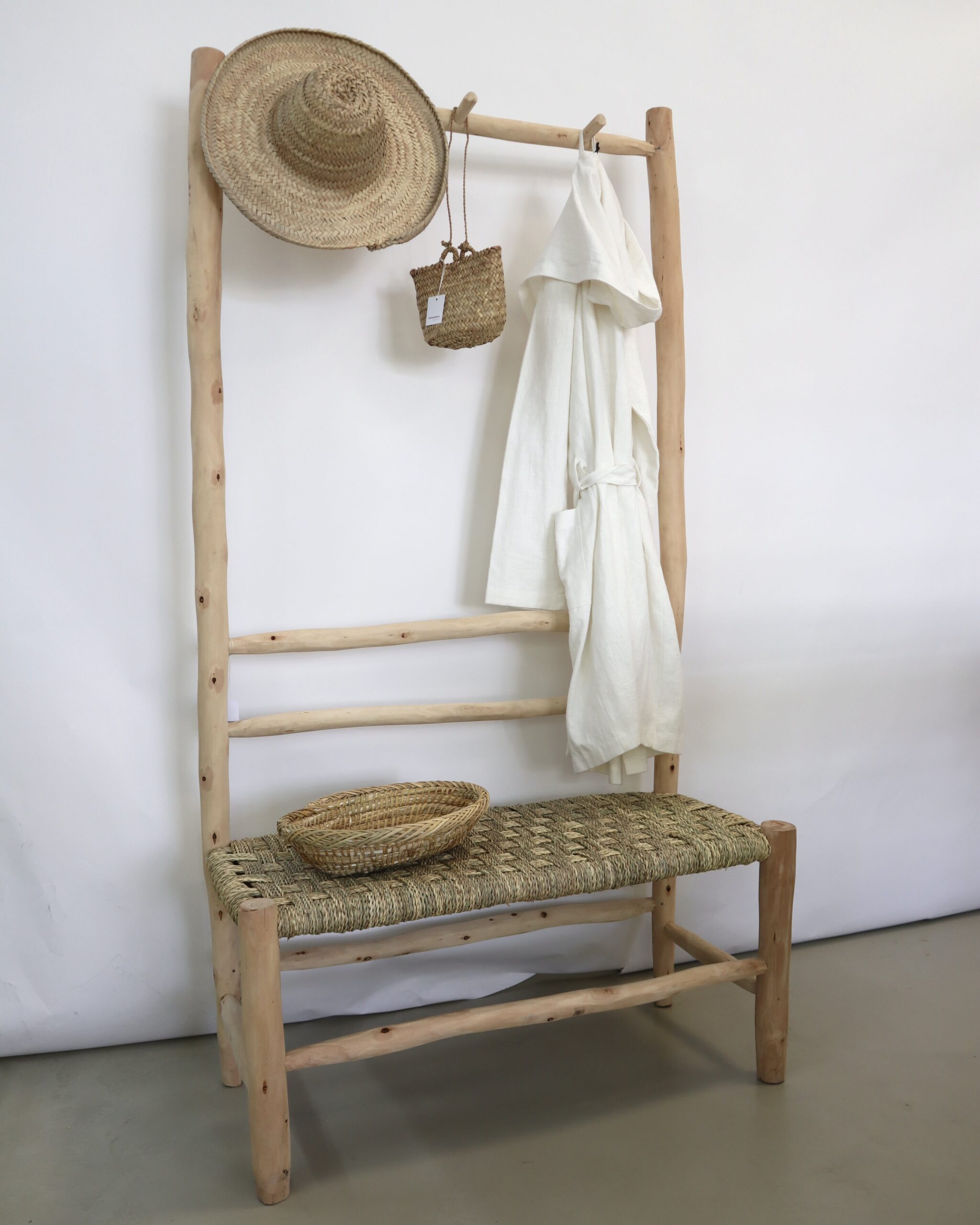 The absolute hanger piece for your home space. Made in Morocco. A bench with a hanger. Can be use to storage your favourite jackets, towels and relax at the same time.