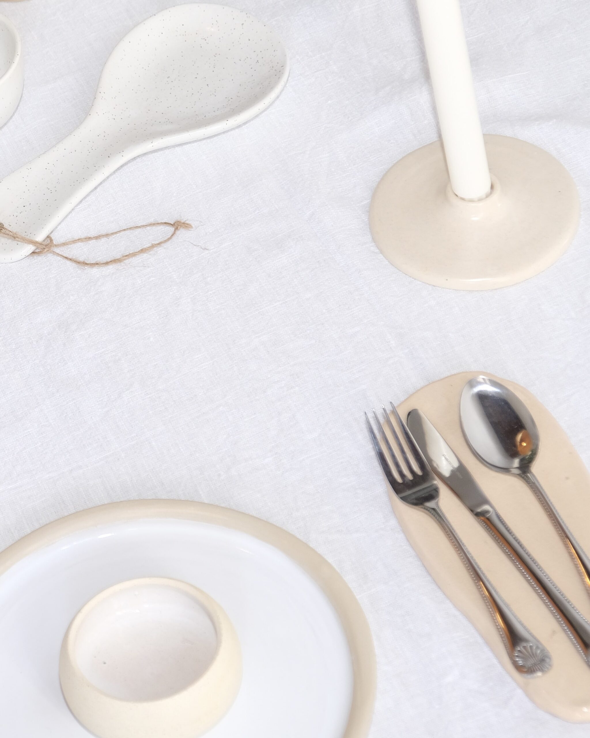 Candles bring a cosy and warm atmosphere to the room. With our classic ceramic candle holder, you get a beautiful stand for candles. Handmade with white clay and thrown on the pottery wheel. It adds a soft touch of minimalism to your home decor. Decorate it as a set with our ceramic candles & diffusers. Suitable for candles measuring 2 cm in dia.