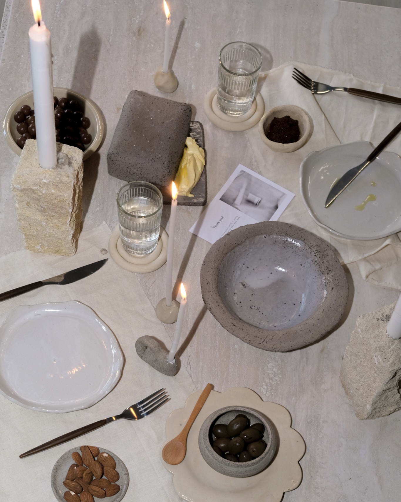 This handcrafted ceramic candle holder, designed to mimic a natural stone, adds a modern yet earthy touch to any space. Its speckled finish and organic shape make it perfect for cozy decor or thoughtful gifting.