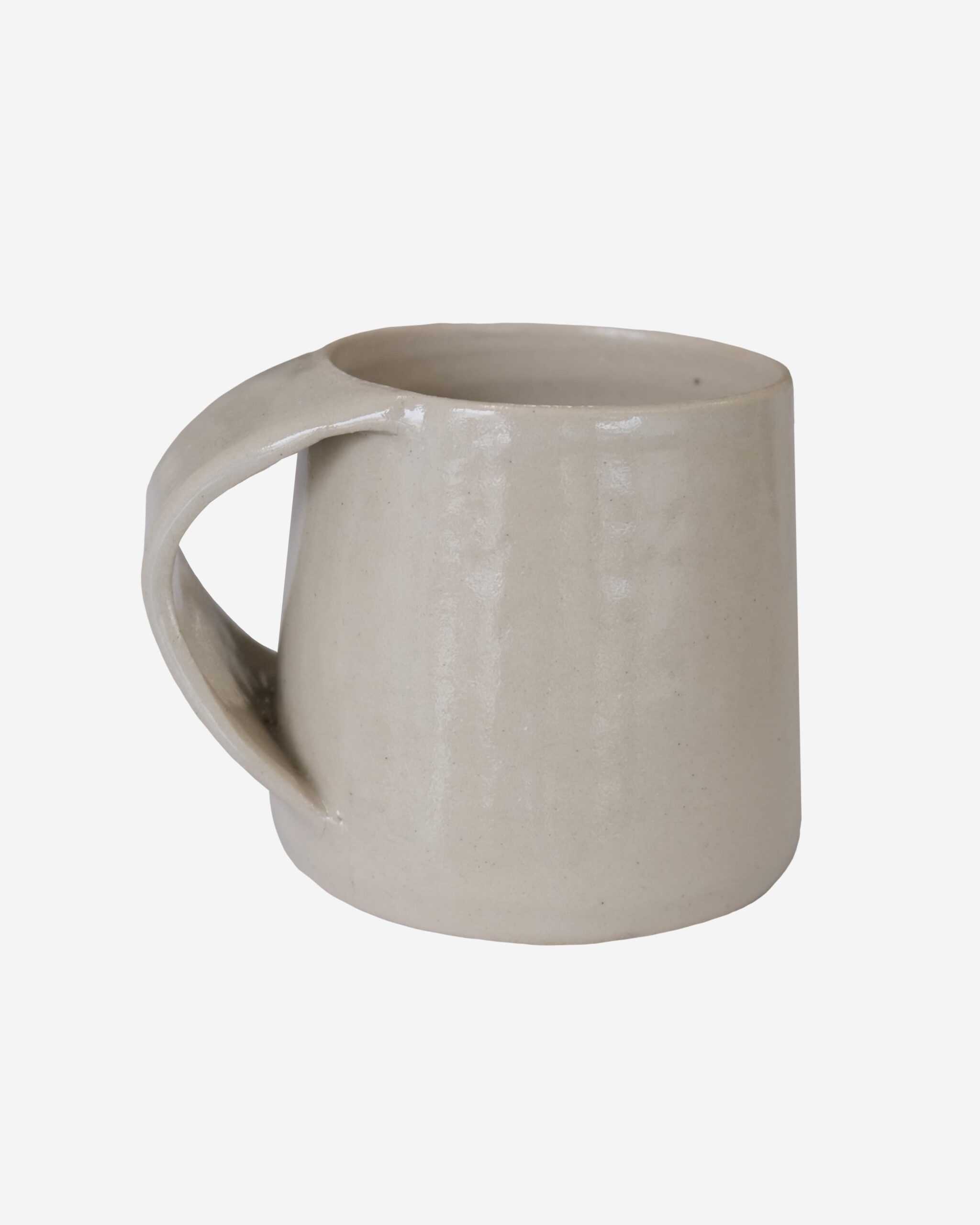 Enjoy your coffee or your tea in our handmade ceramic mug. The unique handle adds a stylish and elegant touch to the mug. Pair it with the small ceramic plate for cookies and enjoy. These mugs are hand-thrown on a pottery wheel and they are made out of white clay. They are dishwasher and microwave friendly.