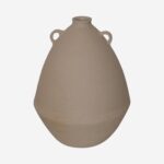 A bold, handcrafted ceramic vase in beige clay. Designed with a single side handle and organic texture. A quiet statement piece for any shelf or table.