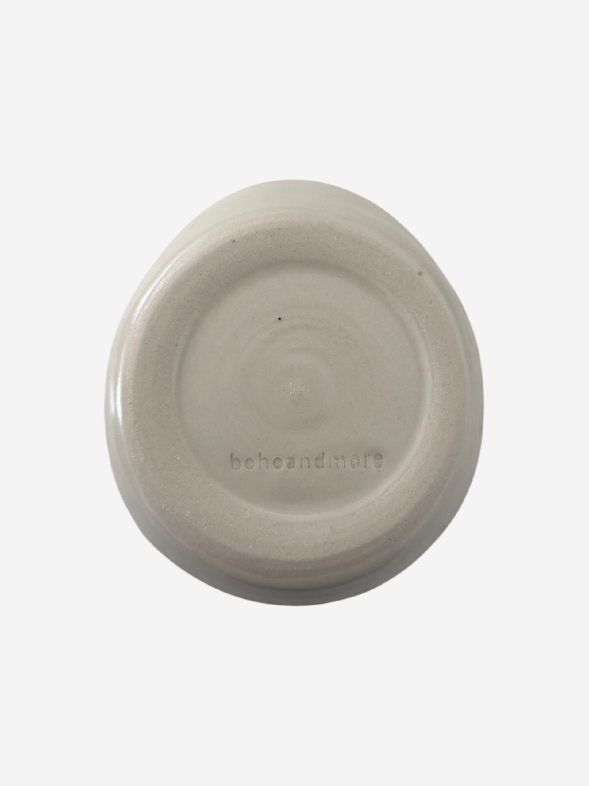 Enjoy your hot chocolate or coffee in our handmade ceramic mug with square holder. The boho print adds a fun and stylish touch to your mug collection. Pair it with the small ceramic boho print plate for cookies and enjoy. These mugs are hand-thrown on a pottery wheel and they are made out of white clay.