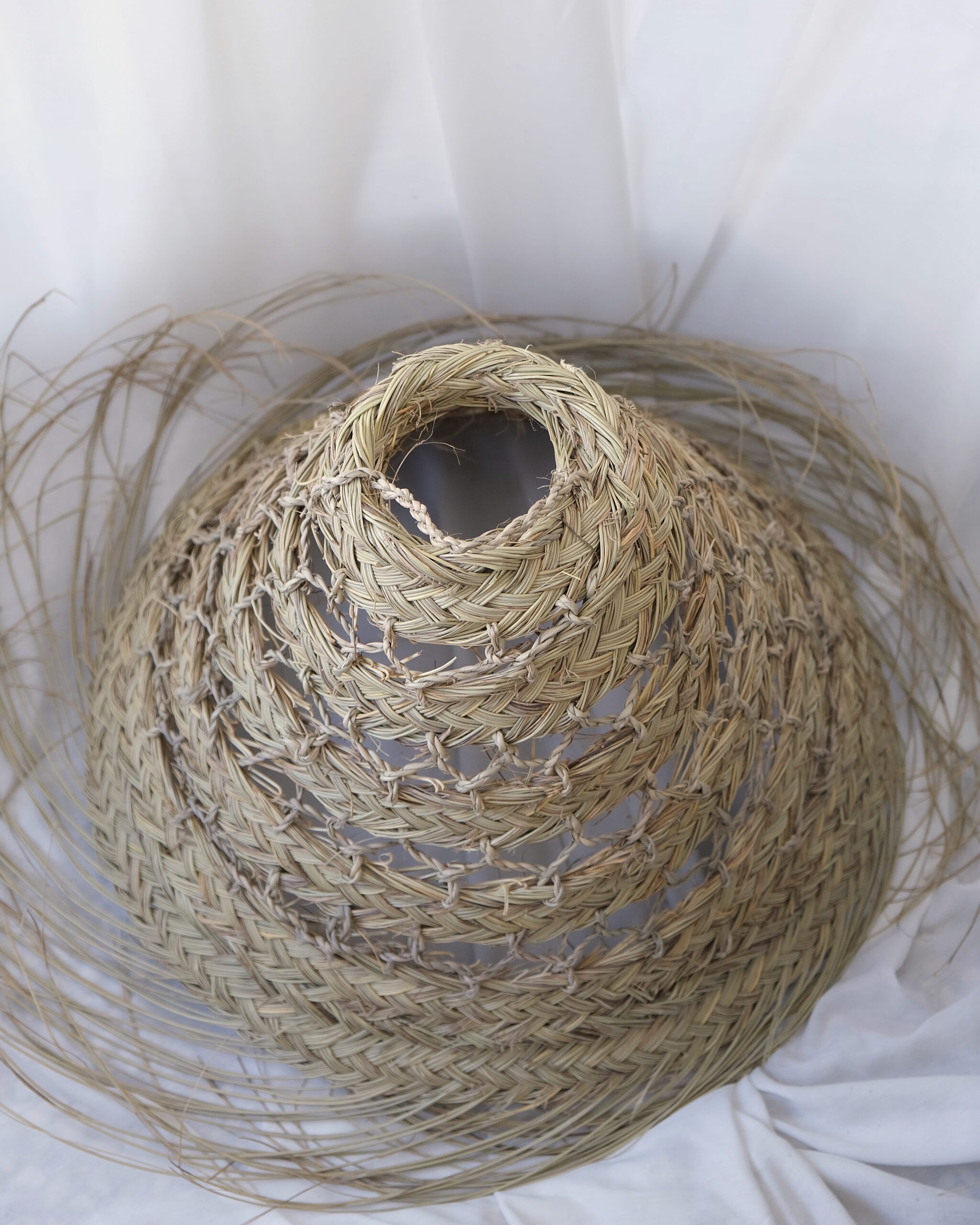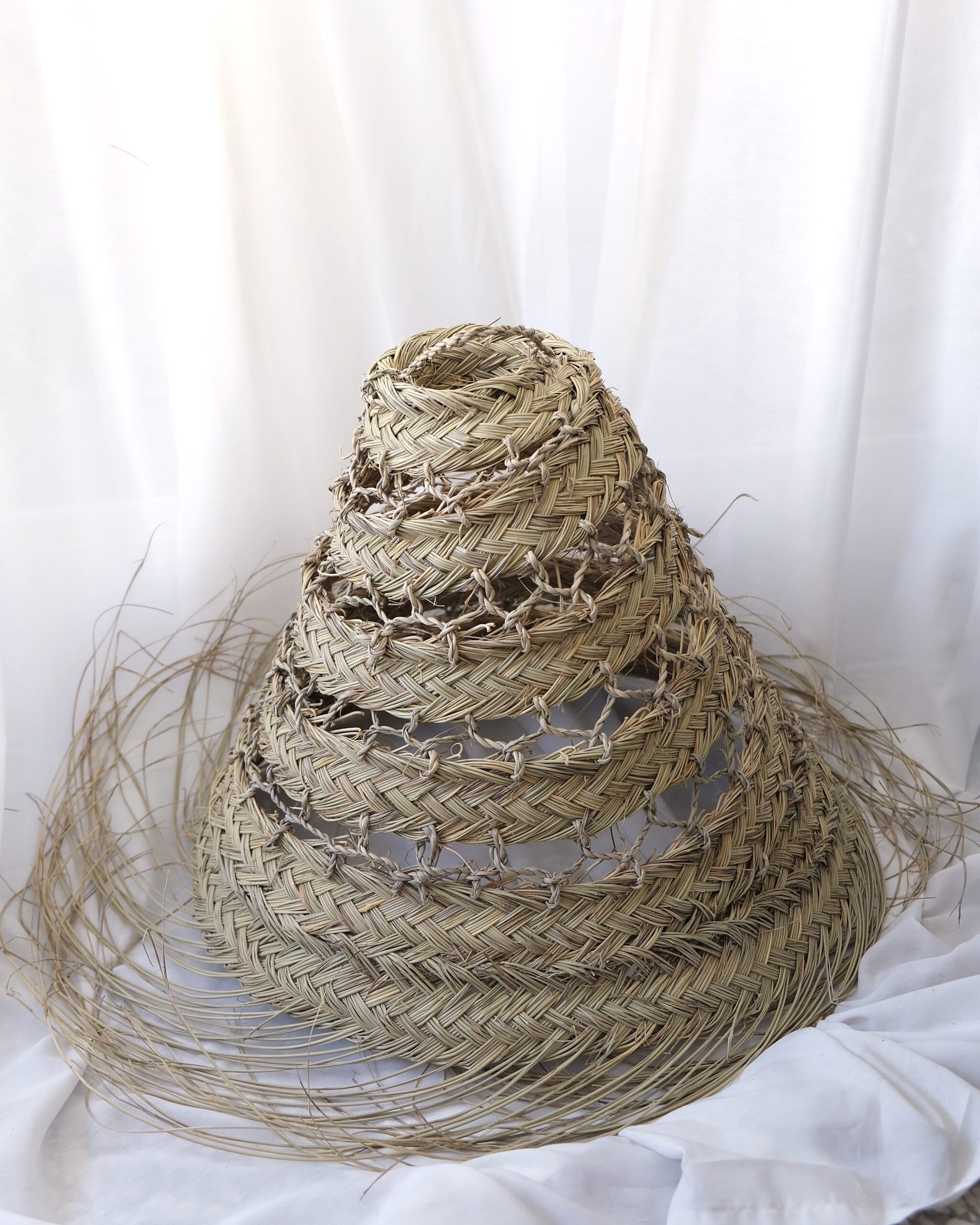 Lamp shade is made of leaves from the date palm and it is handmade in Morocco. The leaves are weaved in a wide pattern that in the bottom ends as lovely loose frills that adds a light and romantic atmosphere. The shade is made with a hook on top that makes it easy to hang. Socket and wire is not included.
