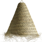 Cone shaped lamp shade is made of leaves from the date palm. The leaves are weaved in a wide pattern that in the bottom ends as lovely loose frills that adds a light and fun look. The shade is made with a hook on top that makes it easy to hang. Socket and wire is not included.