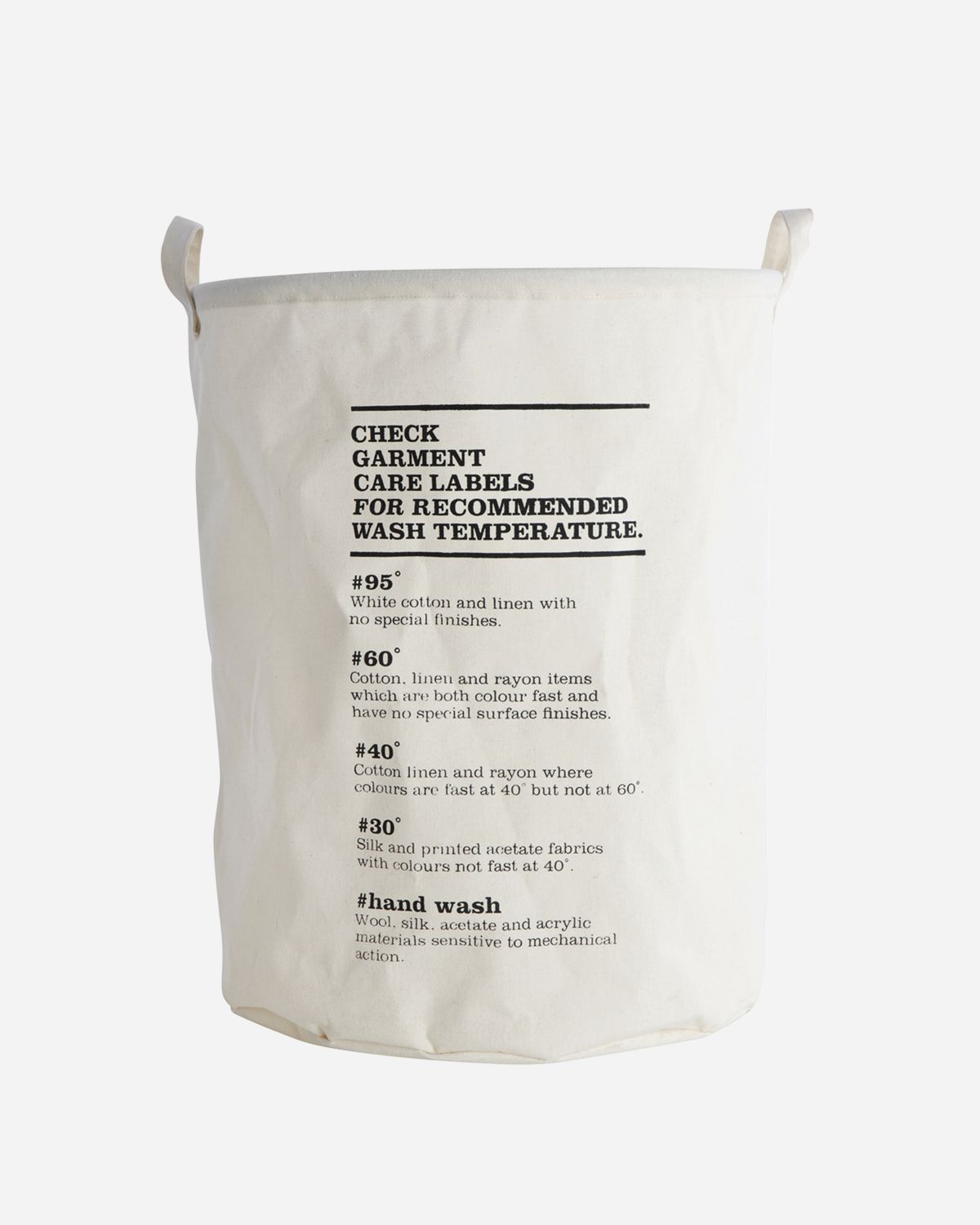 Practical and stunning laundry basket. On the basket, you will find washing instructions that provide the design with a modern and graphic look. You can also use the basket as a nice and alternative storage solution in the bedroom or corridor.
