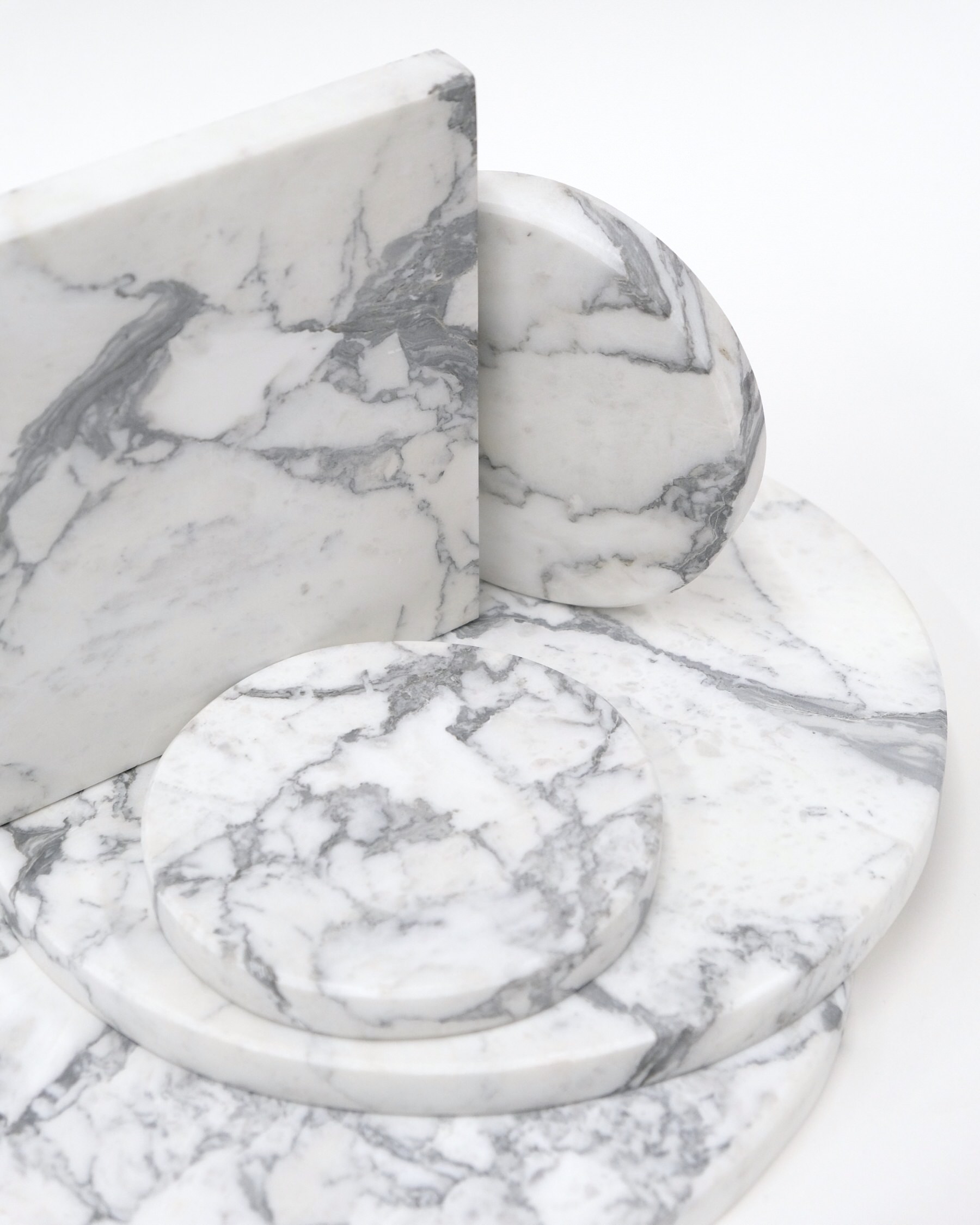 MARBLE TRAY / WHITE WITH GREY / ROUND / S