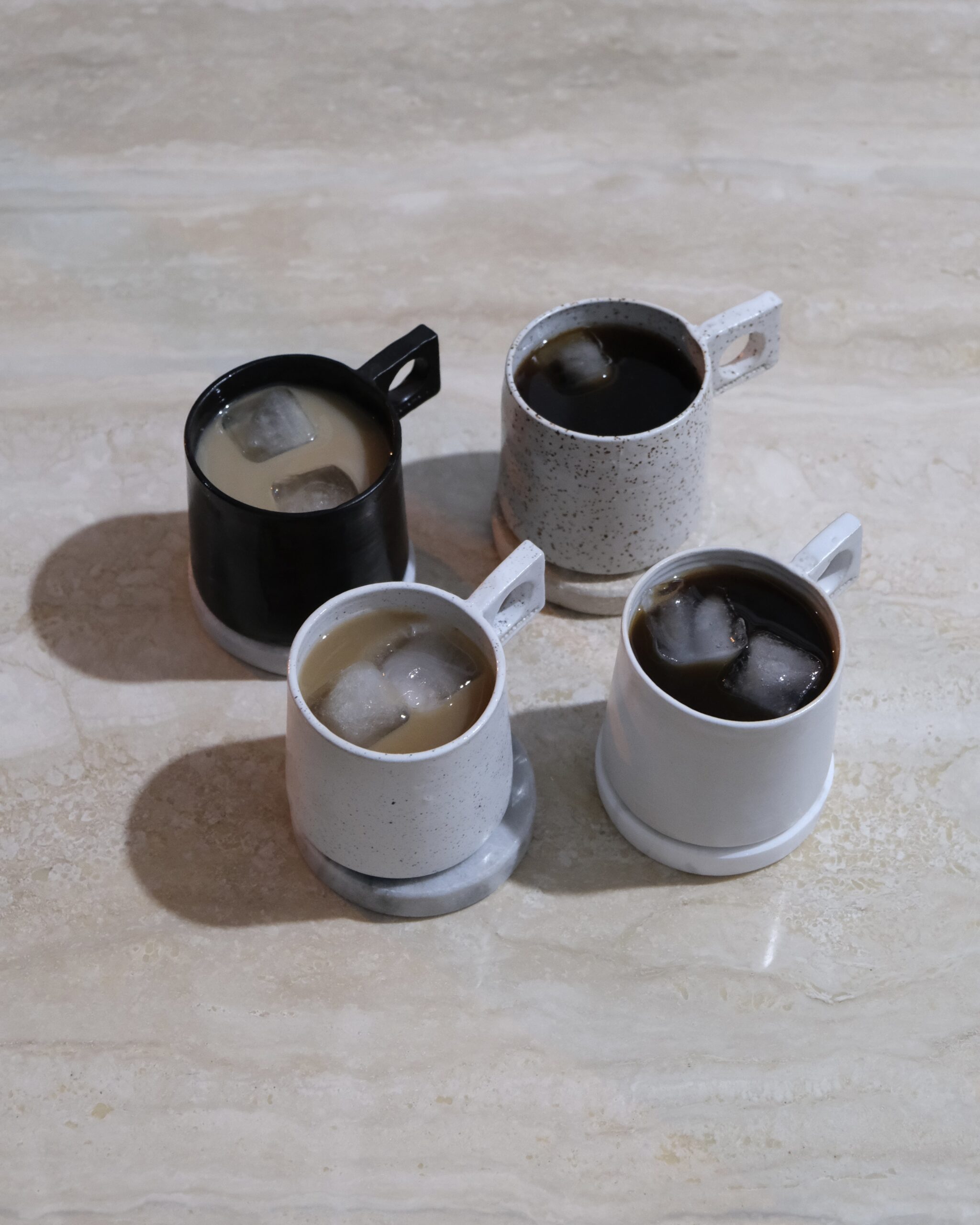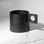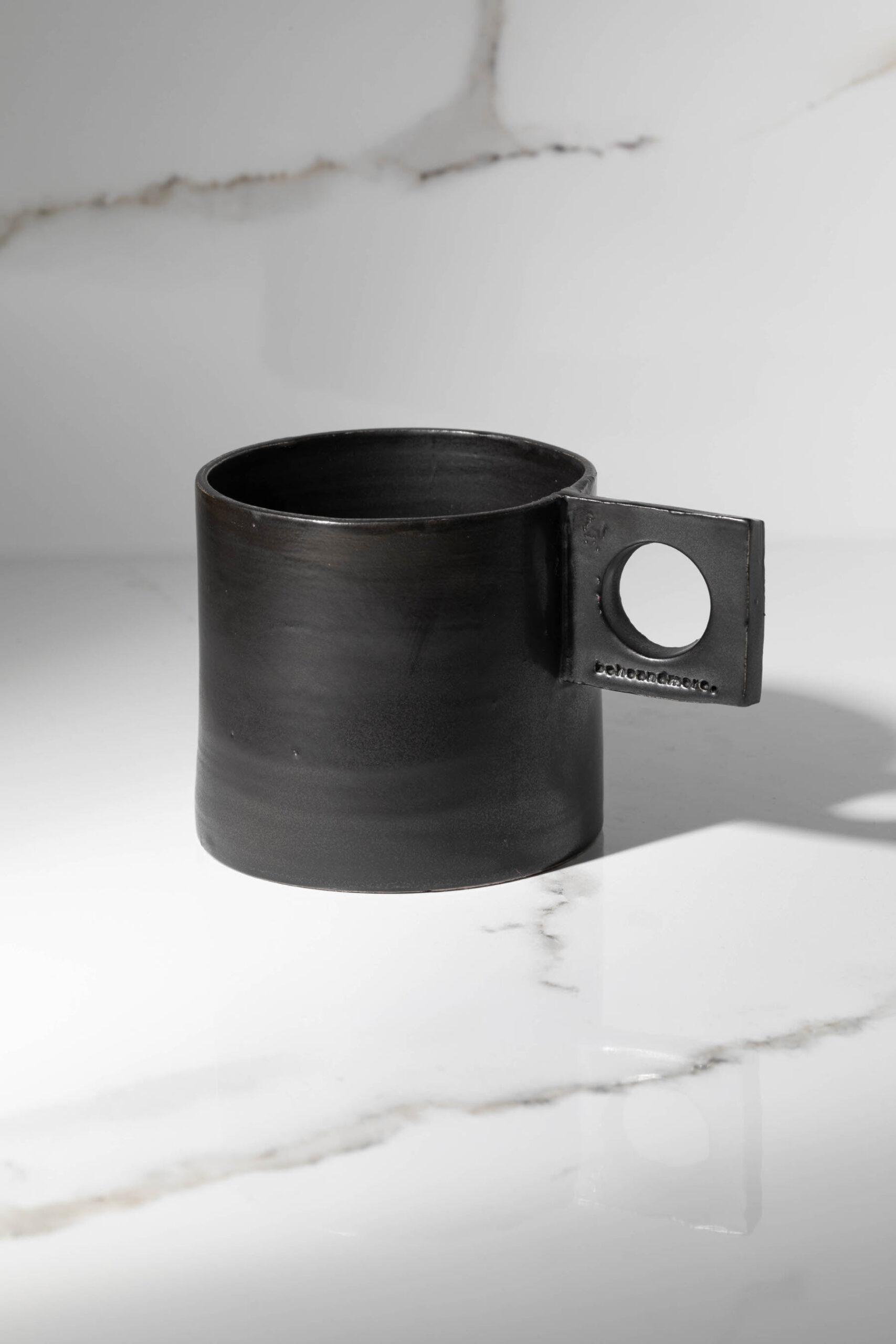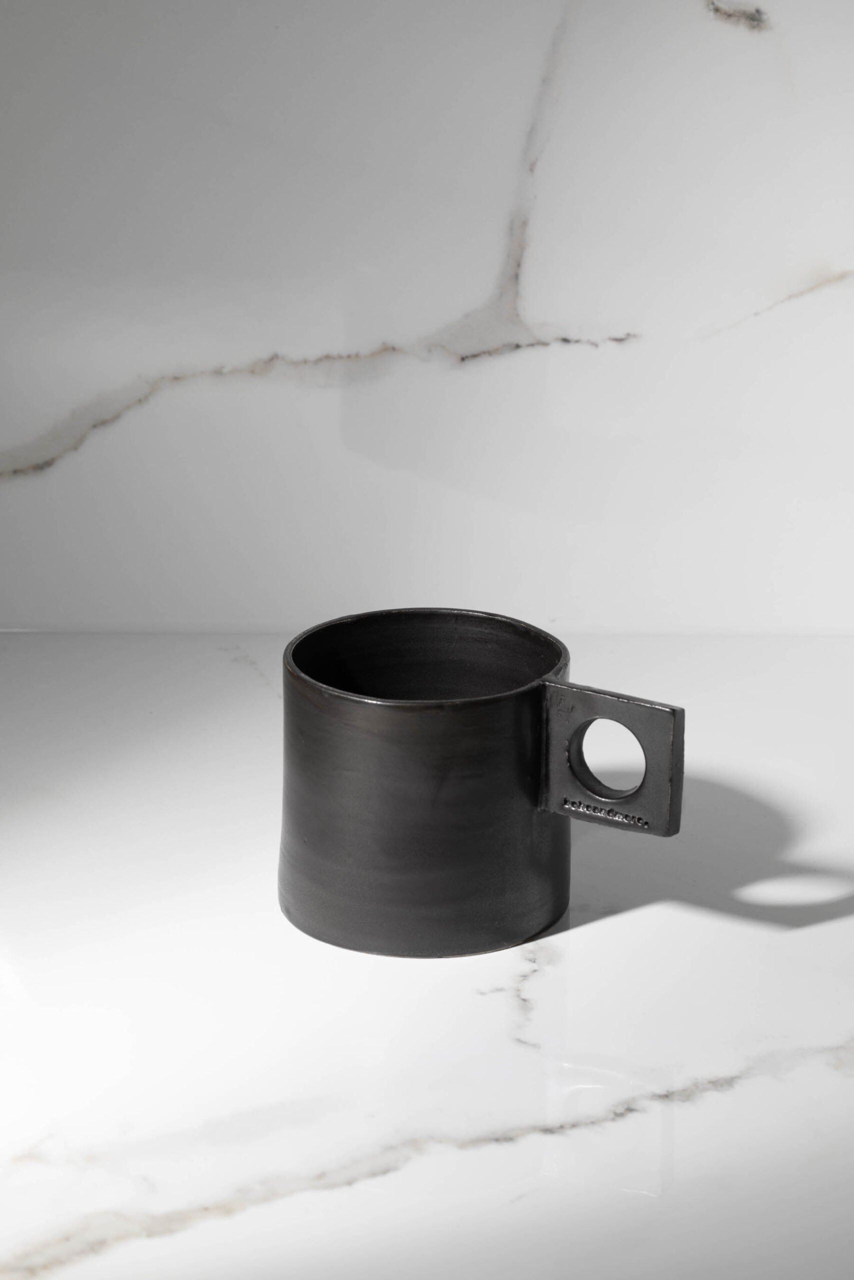 Enjoy your coffee or your tea in our handmade ceramic mug with square holder. The black colour adds a stylish and elegant touch to your mug collection. Pair it with the small ceramic black plate for cookies and enjoy. These mugs are hand-thrown on a pottery wheel and they are made out of white clay. They are dishwasher and microwave friendly.