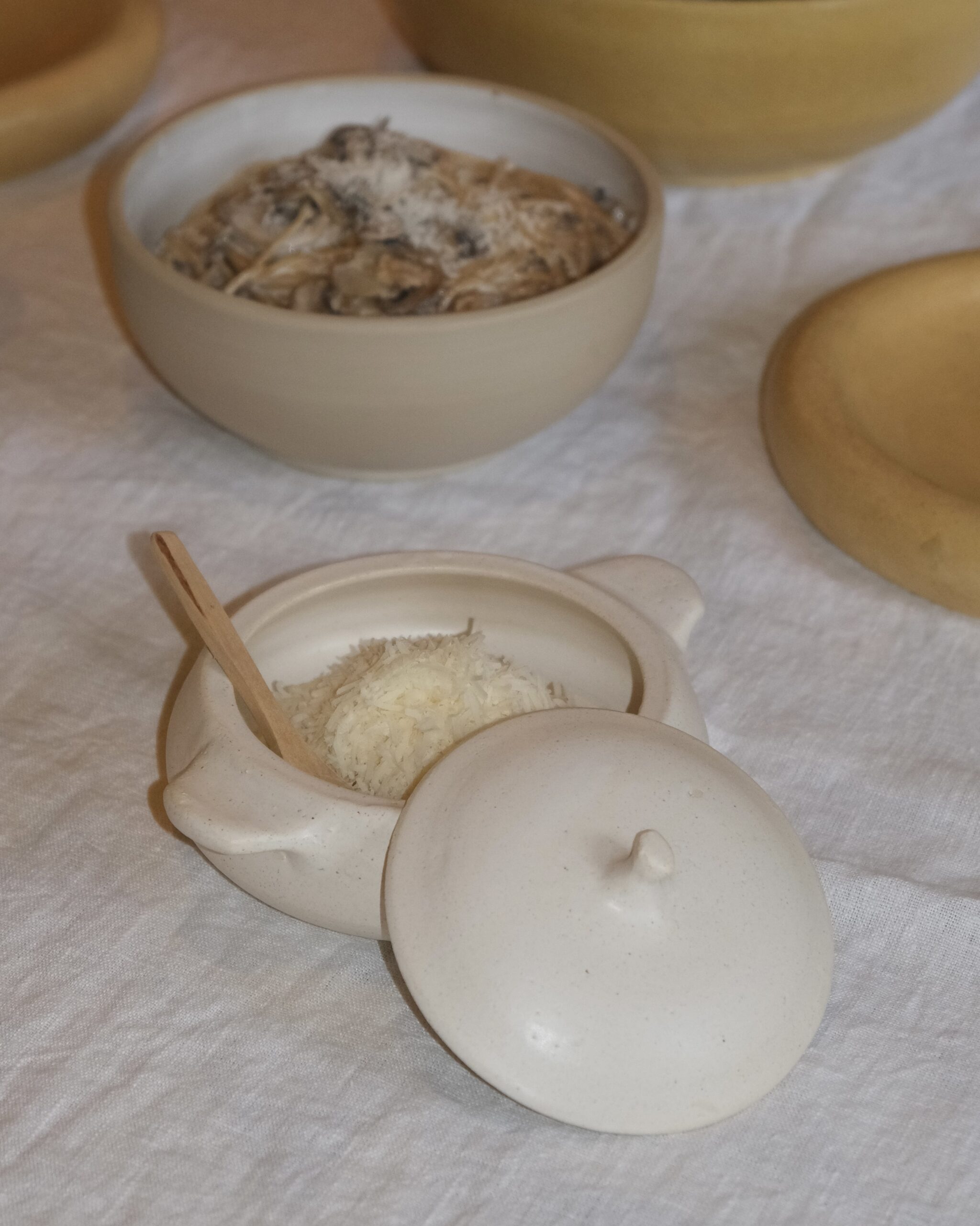 A unique ceramic piece designed by bohoandmore, that consists of two pieces, a pot, and a lid. Can be used to serve your favorite homemade sauces, dips, and trimmings or simply decorate it in your home space.
